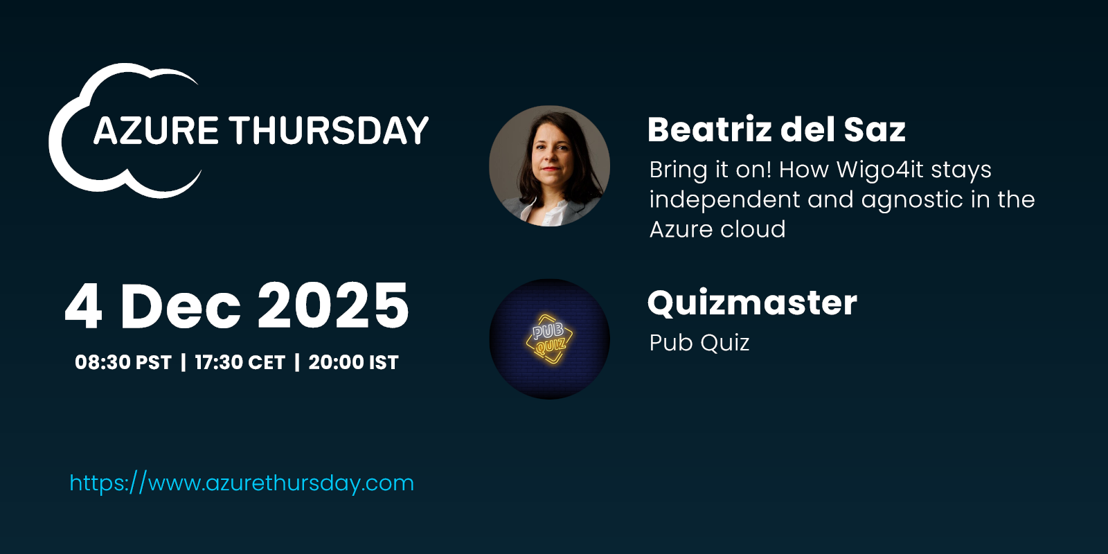 This is a group for all developers, consultants, architects and IT professionals who want to dive into for them unknown topics related to Azure. Azure Thursday are happening every first Thursday of the month and the format will be different every evening. From hand-on workshops to technical talks.
